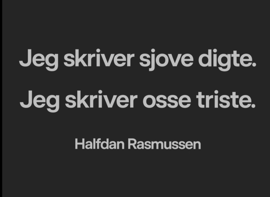 Halfdan Rasmussen – Jeg skriver sjove digte. Jeg skriver osse triste. | DRTV https://www.dr.dk/drtv/program/halfdan-rasmussen-_-jeg-skriver-sjove-digte-jeg-skriver-osse-triste_443455