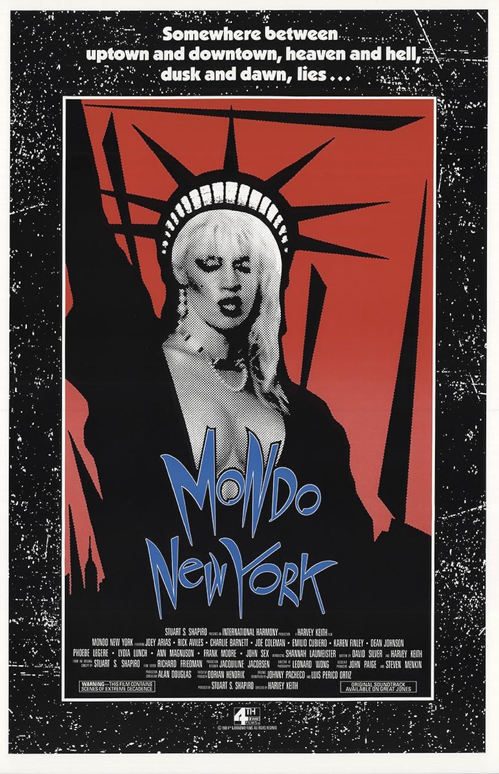 🗽 Mondo New York undersøger Manhattan-performancekunstneres liv og aktiviteter og præsenterer på Joey Arias og Rick Aviles. En række indbyggere i New York City optræder i forskellige skitser, der hver især er forbundet med en ung kvindes udforskning af byen. Andre optrædende omfatter Charlie Barnett, Joe Coleman, Phoebe Legere, Karen Finley, Lydia Lunch, Veronica Vera, Frank Moore og Ann Magnuson. Filmen blev produceret af Night Flight-skaberen Stuart S. Shapiro. Se filmen på Night Flight Plus.
